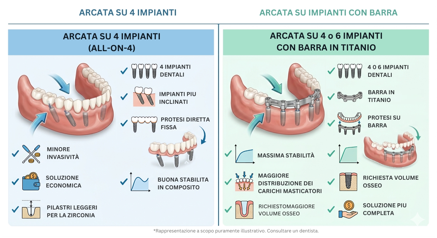 Diffida delle cliniche che propongono arcate complete in zirconia su 4 impianti a prezzi sotto i 2.000€. Quel prezzo non è un’offerta: è la prova che stanno risparmiando su ciò che non si vede — la struttura interna, i materiali della barra, il numero di pilastri.